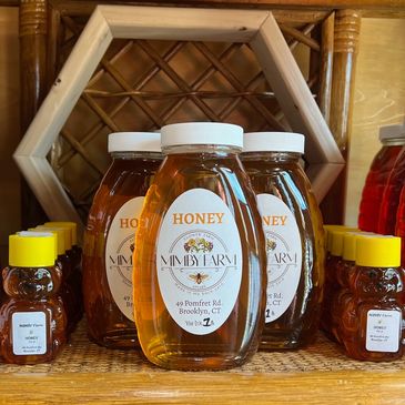 Natural honey from our beehives for sale at our farm stand! Our honey is raw, pure, and perfect for baking, cooking, or eating straight from the jar.